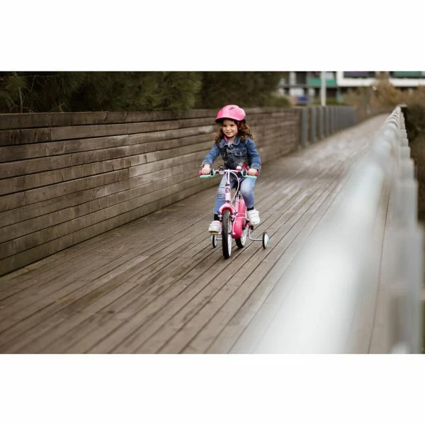 1,2,3 pédalez! Nous avons conçu ce vélo 14″ pour que les enfants de 3 à 5 ans, mesurant 90cm à 105cm, apprennent à pédaler et à rouler comme les grands.