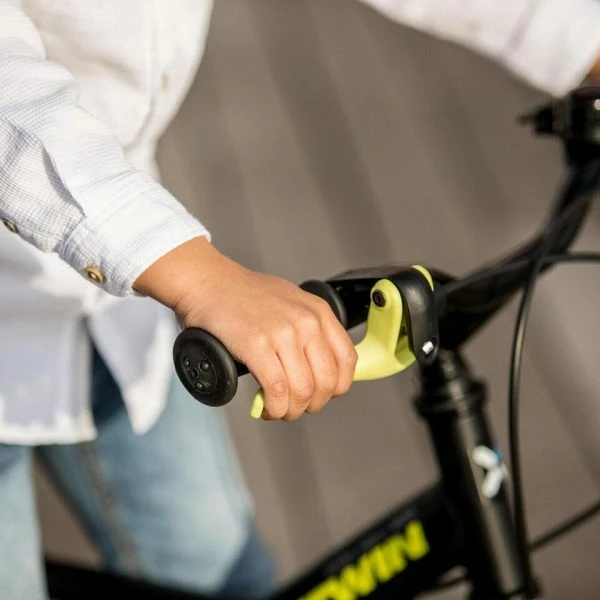 Des freins plus accessibles, une meilleure prise en main, voilà les atouts de notre “Système Stop Easy”. Pour un mouvement plus naturel, l’appui sur le levier de frein se fait en parallèle du guidon. Tout en restant progressif, ce levier de frein innovant permet ainsi de gagner 30% de puissance de freinage par rapport à un levier classique. Une innovation de notre équipe B’twin, appréciée des enfants comme des parents.