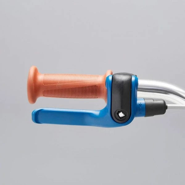 Des freins plus accessibles, une meilleure prise en main, voilà les atouts de notre “Système Stop Easy”. Pour un mouvement plus naturel, l’appui sur le levier de frein se fait en parallèle du guidon. Tout en restant progressif, ce levier de frein innovant permet ainsi de gagner 30% de puissance de freinage par rapport à un levier classique. Une innovation de notre équipe B’twin, appréciée des enfants comme des parents.