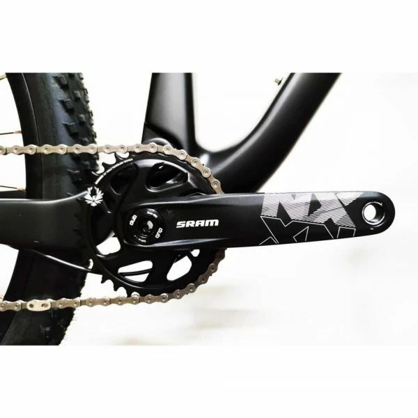 Pour la transmission, le groupe Sram NX a été choisi pour le dérailleur arrière complet, le pédalier avec plateau de 32, les manettes, la cassette 11-50. Avec la suspension pneumatique avant ROCKSHOX Recon 100 mm avec verrouillage du guidon, les freins hydrauliques SHIMANO MT200 et les roues EVOLUTION TECH XCPRO.