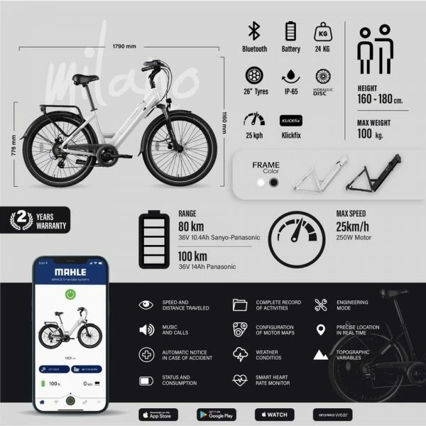 VÉLO CONNECTÉ MAHLE Smartbike®* est le contrôle absolu de votre vélo électrique et de l’environnement qui vous entoure. Connectez-vous via votre Smartphone ou Smartwatch avec l’application Bluetooth (iOS / Android) MySmartbike et accédez à toutes les informations : hauteur, vitesse, calories, etc. disponibles sur votre smartphone en temps réel.