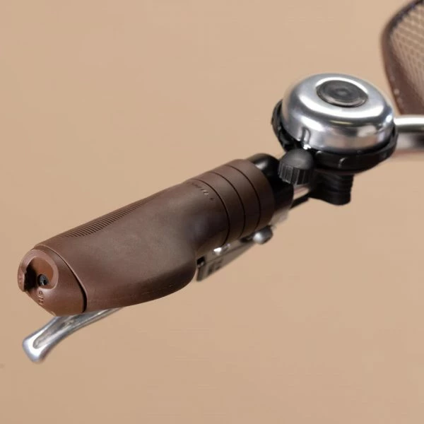 Grips ergonomiques pour plus de confort de position lors d’une utilisation régulière du vélo, équipés d’inserts pour y glisser des VIOO clips pour plus de visibilité latérale.