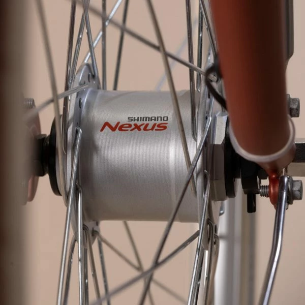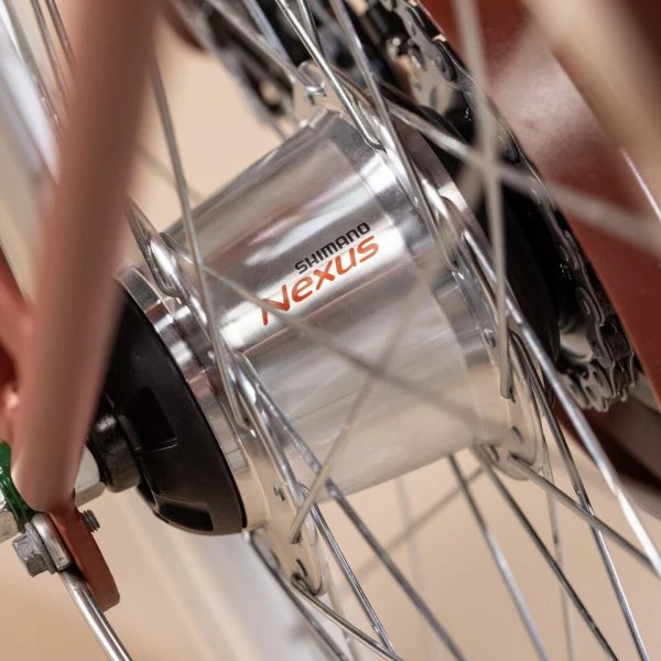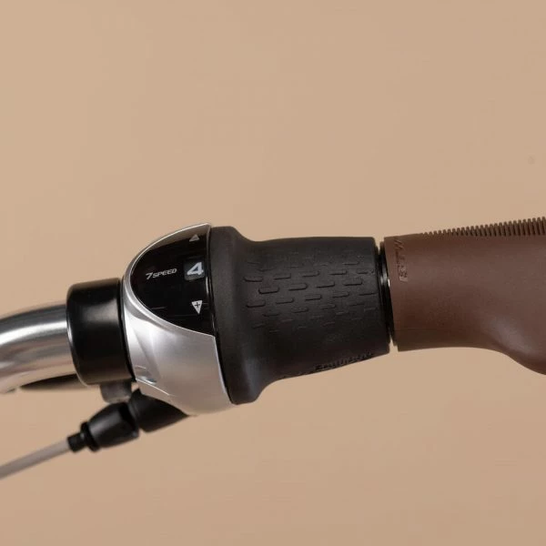 Moyeu Shimano Nexus à 7 vitesses intégrées actionné par poignée tournante.