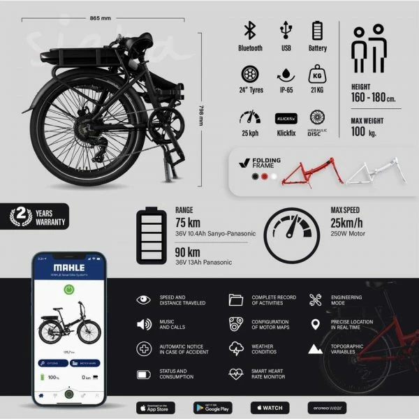 Vélo électrique pliant de ville. Le Smart eBike Siena est un vélo pliant électrique confortable, idéal pour les déplacements urbains grâce à ses pneus de 24 pouces.