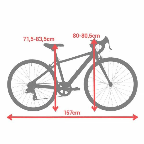 Cadre aluminium, roues 650 et pneus avec section de 25, 7 vitesses Shimano.