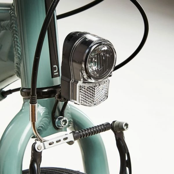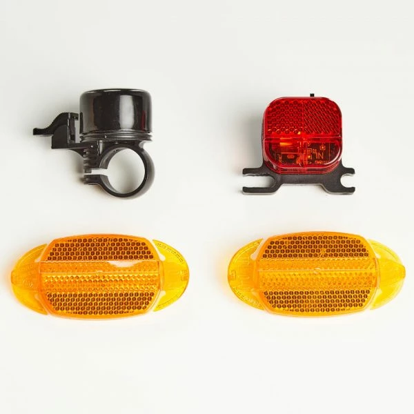 Le vélo est entièrement équipé pour rouler sur la voie publique : éclairage à piles arrière, avertisseur sonore, réflecteurs de lumière sur les roues (catadioptres).
